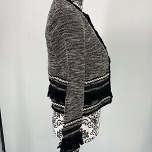 H&M black and white tweed blazer with fringe mixed media. size 2