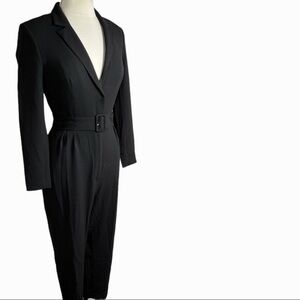 Ankle-length jumpsuit in woven fabric with notched lapels. Concealed snap buttons at front, zip fly, and seam at waist with removable belt. Decorative buttons at cuffs. Partly lined.