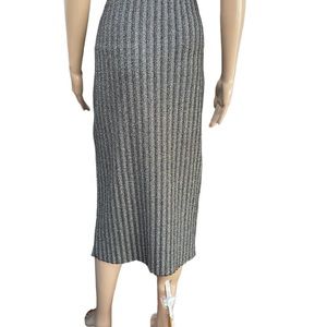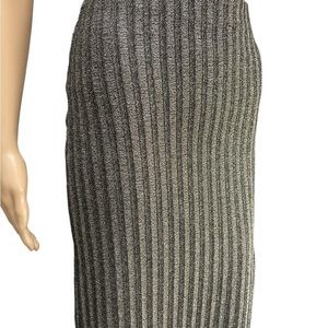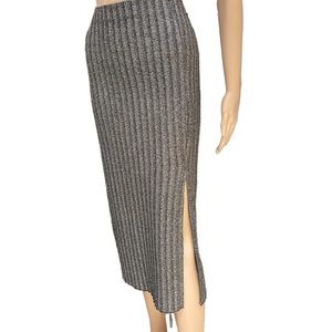 H&M black silver shimmer Bodycon stretch midi skirt side split size medium