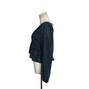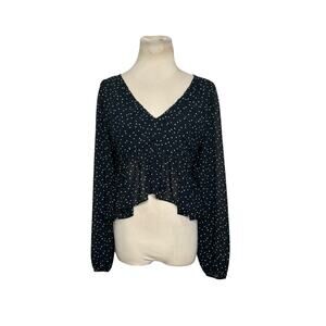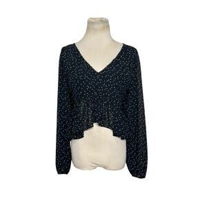 H&M black white polka dots long sleeves crop blouse size Small