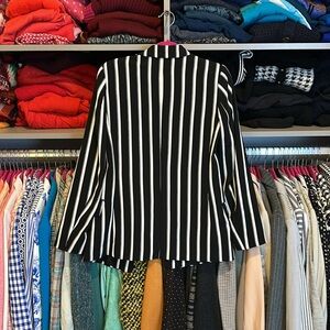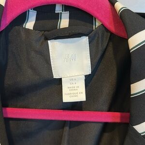 H&M black/blue/white striped 2 pocket open front blazer size 4