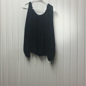 H &M black blouse. Tie at the top and open arms with ties on each end.