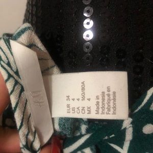 Green & White designed H&M blouse. Eye lit buttoning in the back (shown) Size 4.