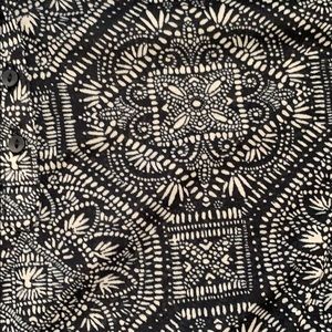 Black & white, flowey, and loose fitting. The tag have never been ripped off & never worn. It’s in awesome condition!