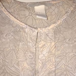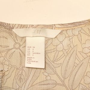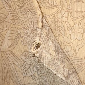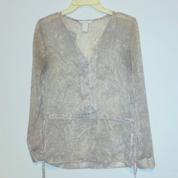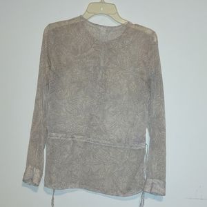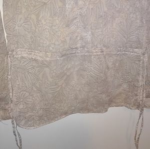 cream colored sheer blouse size medium, drawstring waist, clasp in front, rarely worn, brand HM