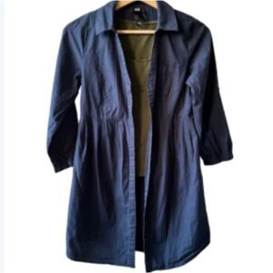 H&M blue shirt dress tunic size 2 front button lightweight long shirt v-neck