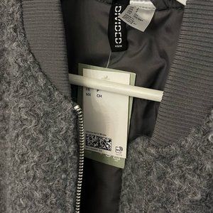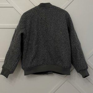 Short, lightly padded bomber jacket in a coated, woven fabric with a small, ribbed collar and a zip down the front. Loose fit with dropped shoulders, welt front pockets, a zipped sleeve pocket and ribbing at the cuffs and hem. Lined.