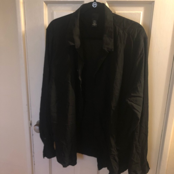 HM black viscose feel button down. It’s labeled XXL but fits more like XL.
