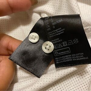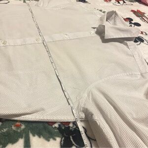 White button down with small black dots