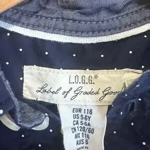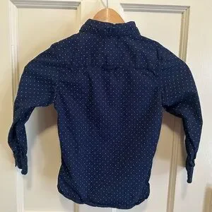 EUC H&M boys button down shirt Navy blue with tiny white polka dots