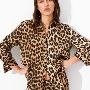 H&M button down shirt; Beige/leopard print, XS, NWT