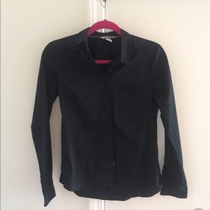 Women's button downs in black, white, and a light blue with navy polka dot. Great to pair with a pair of cute pants or a pencil skirt for a day at work!