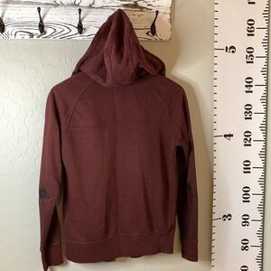 H&M button front hoodie type jacket. Two front pockets distressed at elbows