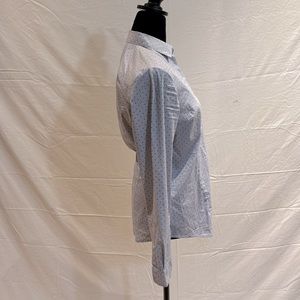 Blue with dark blue dots H&M button up blouse. From a smoke free home.