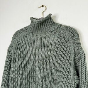 Long-sleeved model with a high collar, dropped shoulders and rolled edge at the neck, cuffs and hem.