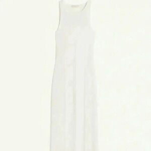 Fitted, sleeveless, calf-length dress in a rib knit with knit sections in airy mesh. Round neckline and an open section at back.