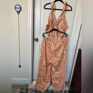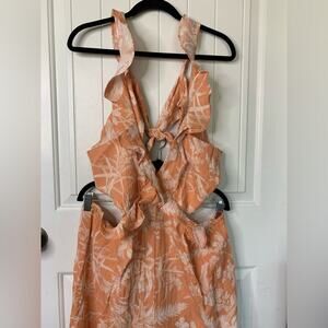 H&M concious choice ruffle cutout open back orange jumpsuit size XXL