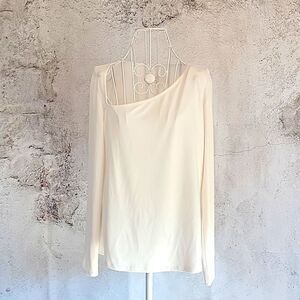 H&M cream color casual top with assymetrical neckline Women's Size L