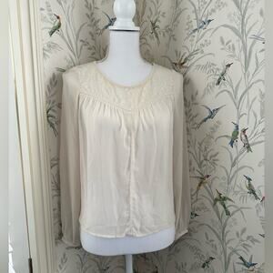 H&M cream color with lace women’s boho blouse size 4 sheer