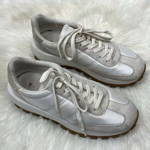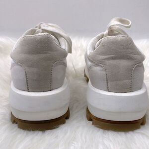 H&M | cream white chunky platform sneakers 8.0 suede & fabric style , in great used condition, some signs of wear like laces need cleaning and suede may have some stains or fading, white soles may need some extra cleaning.