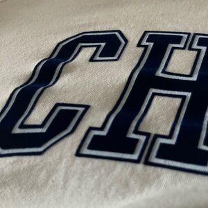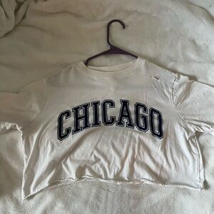 H&M cropped Chicago Tee, w distressing/holes and cropped look as design. The ‘Chicago’ is in blue velvet super super cute always got compliments Great condition