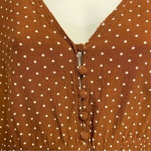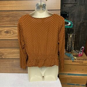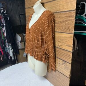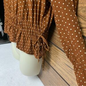 H&M dark brown slightly cropped top size 10 white dotted double ties on sides