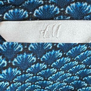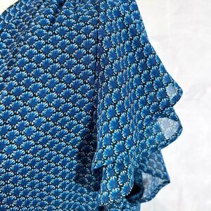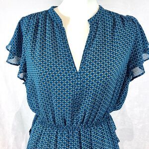 H&M deep turquoise blue patterned flutter sleeve tie sides dress size large