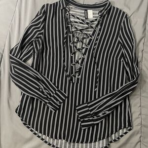 H&M divided Lace-Up Boho Nautical Shirt Blue Black Striped Size Medium 6