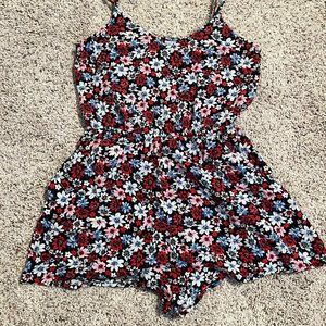 Good Condition, discontinued, V-neck, romper, floral, spaghetti straps, red and blue and pink, shorts