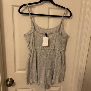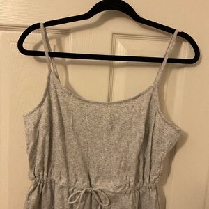 H&M divided gray romper size large drawstring in the front and adjustable straps nwt very nice and comfy