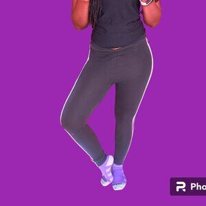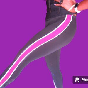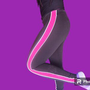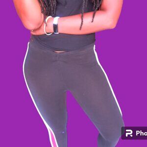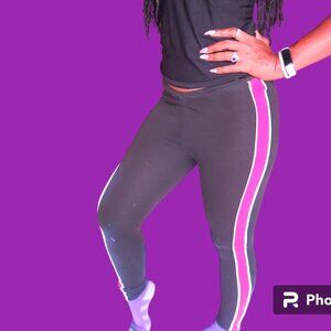 H&M divided tuxedo vertical striped leggings in black, red and white size small.