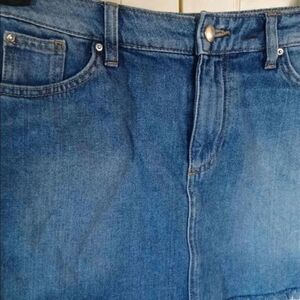 H&M divided jean skirt with raw hem, slight stretch but not much, size 4