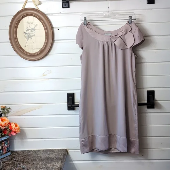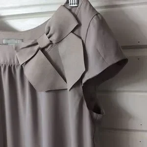 Cute babydoll style dress grey with satin border on bottom cap style sleeves