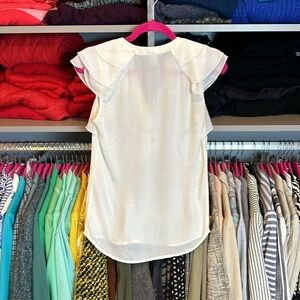 No stains or rips. Ruffled shoulders. 2 button front closure.