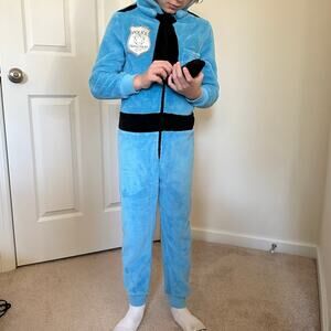 H&M fuzzy police officer zip up one-piece suit, size 6-8. Great condition. Comes with removable plush walkie talkie; Measures 43 inches long, 15 inches pit to pit