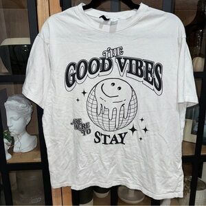 H&M good vibes tee graphic t-shirt crewneck short sleeve mirrorball smiley face