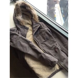 H&M grey jacket with fur lined hood and fleece interior lining. Worn gently, in very good condition. I do bundle and do consider offers. No trades.