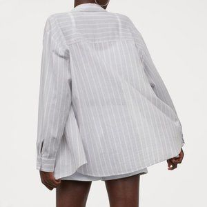 H&M grey white stripe cotton button down casual over shirt