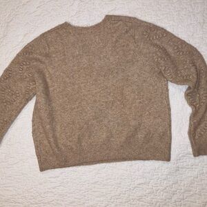 Cute crew neck sweater. Light tan/beige. Has subtle heart design on front.