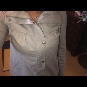 This jacket is in great condition very stylish trendy jacket. Size 8 runs a bit bigger. Very cute detailed sleeves. Please look at the pictures no stains no holes this coat is 31 inches in length. The sleeves are 24 inches long.