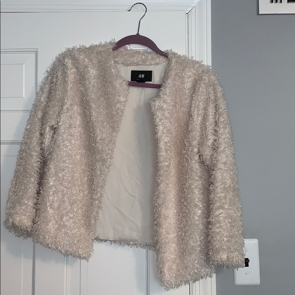 H&M cream faux fur jacket