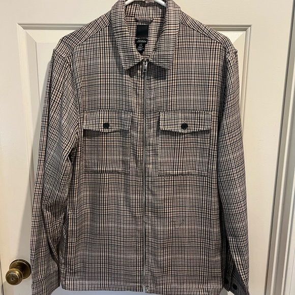 H&M men’s jacket; zippered front; 2 breast pockets with button flaps; side pocket on each side; worn once; like new; 21” pit to pit