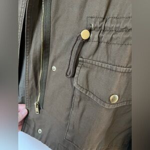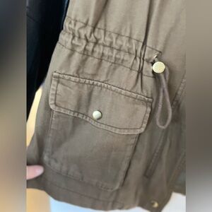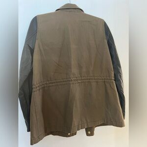 H&M army green jacket with faux leather sleeves