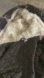 in good condition jacket is very clean the hood is not detachable . The jacket has a quilt lining inside for warmth it has a drawstring at the waist and a zipper closure along with snaps