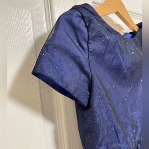Round neck short sleeve, bottoms at back. Lined Pre owned condition Perfect for Holiday parties