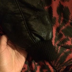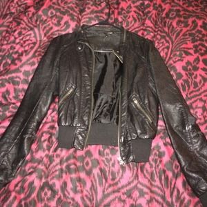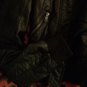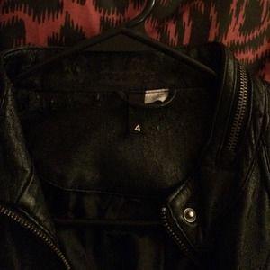 Very worn in, a few flaws but Still an adorable jacket! Trendy and lightweight. Also, black leather will always be in style!