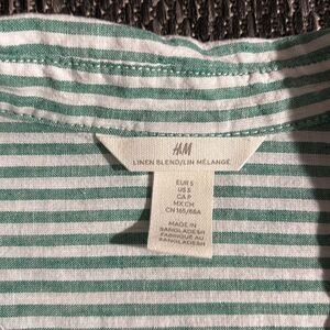 H&M linen blend shirt green striped