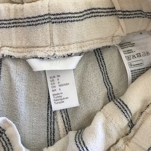 H&M linen casual slacks. Great to dress up or dress down. Worn once and in perfect condition. Pants shrunk slightly in the dryer and no longer fit. Tag reads size 6, but H&M sizes run small and now that it has shrunk it fits like a size 2. I am a size 4.