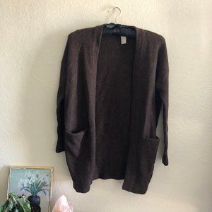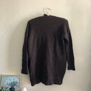 A super cozy closet essential. H&M brand. Really soft, fleecy material. Dark brown with some multi-colored flecks, as shown in the last pic. Mid-thigh length. 2 functional pockets at the front near the waist. Open cardigan with no buttons. Size XS, but it has some stretch so it may also fit a Small. From a smoke-free home. Please comment with any questions, or feel free to make an offer!