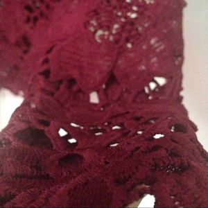 It is a dark maroon color with flower lace detailing. I have never worn it, bought it a few weeks ago and didn't not like it on me. Original price $30 but I'm selling it for $10-$15 and willing to trade.